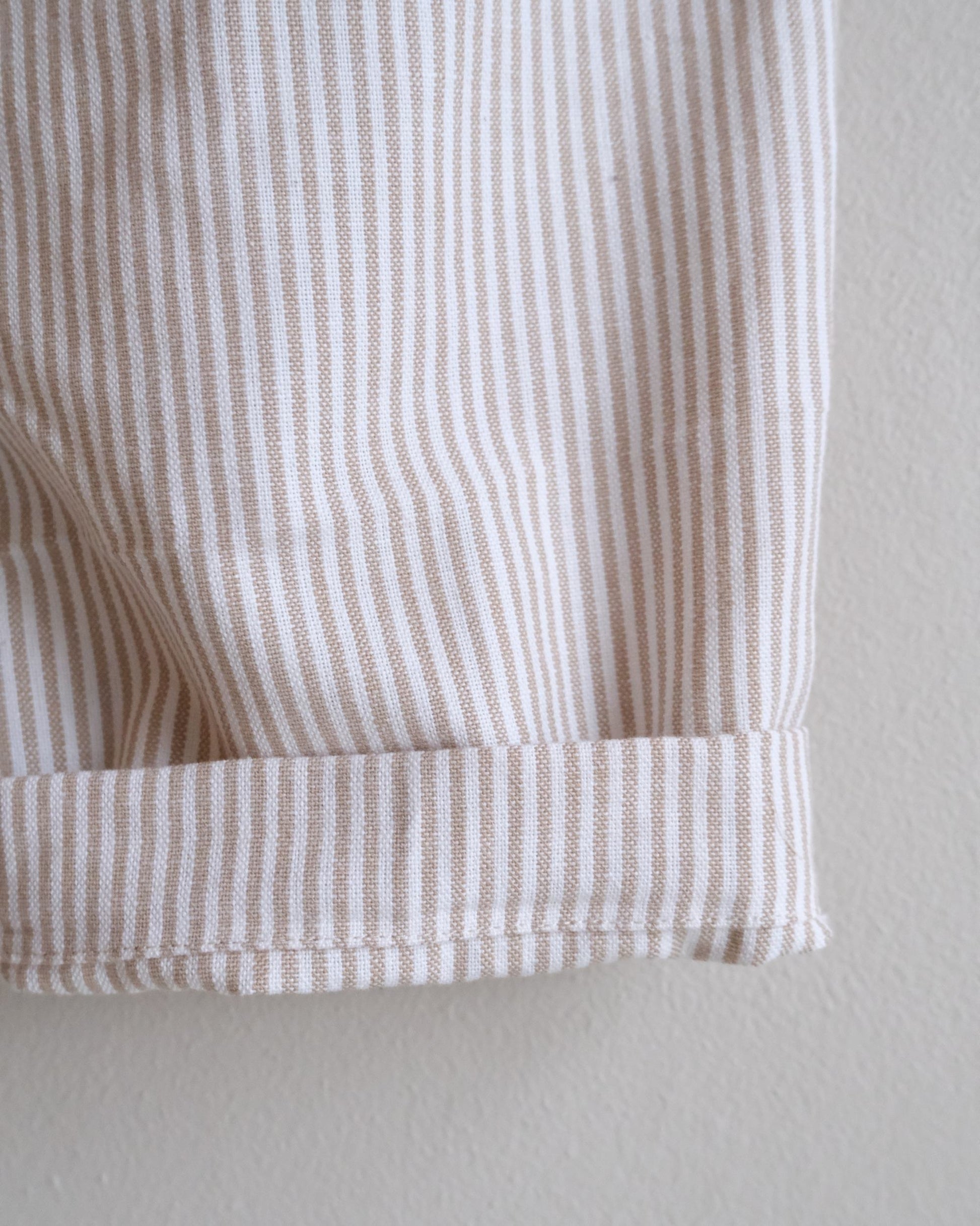 Pants made from old pillow cases.