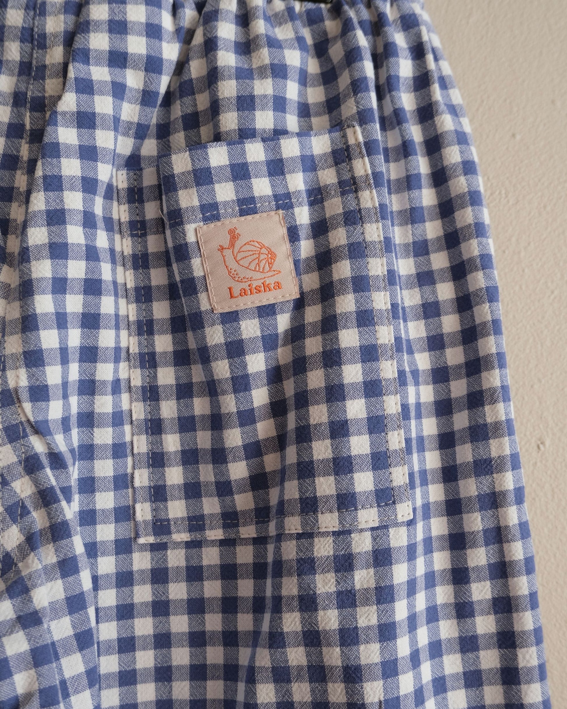 Relaxed pants made from an old tablecloth.